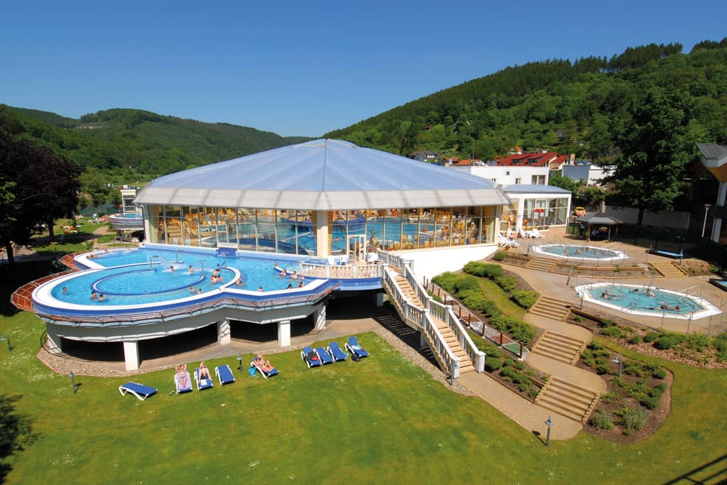 Direkt am Weserufer liegt die Weser-Therme mit mediterraner Thermenwelt und Saunaland. In den drei Innenbecken mit Wassertemperaturen von 33 bis 36 Grad Celsius beträgt die Solekonzentration 1,5 bis fünf Prozent. Saunafreunde können bis zu 15 Aufgüsse im Saunaland genießen. Im Innenbereich befinden sich fünf Themensaunen. Im Saunagarten, der wunderschön direkt an der Weser liegt, gibt es zwei Außensaunen und die Bootssauna „Jacques Galland“. Im Massage- und Kosmetikbereich der Weser-Therme wird ein umfangreiches Angebot unterschiedlicher Anwendungen angeboten.